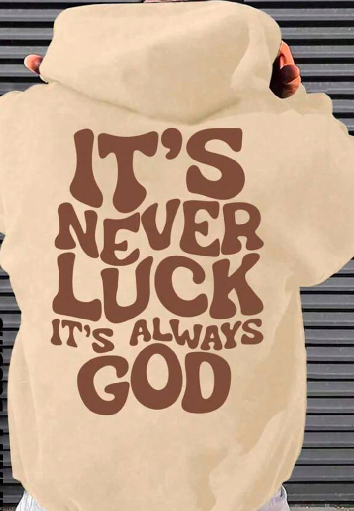 Experience the empowering message of "It's never luck, it's always God" with our hoodie. Made with high-quality material, this hoodie not only offers comfort but also serves as a daily reminder of the role faith plays in our journey. Stay motivated and stylish with our hoodie.